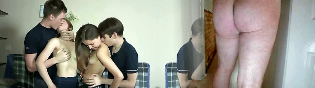 Lewd Russian teenagers fukc furiously in hardcore foursome fukc sessiin