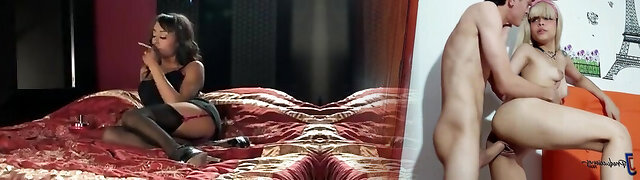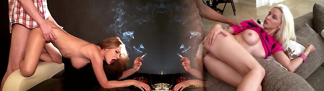 Inxcredible smoking movie with big globes, blonde, couple scenes