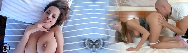 Smoking brown-haired with hug tits