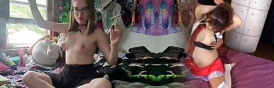 Nerdy teen webcam slut smokes and masturbates till squirtinjg