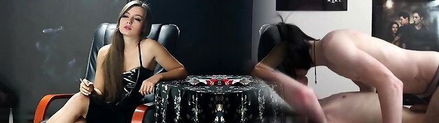 Dark-haired sexy tee smoking and doggystyle fukcing of the webcam