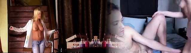 Bolnde painter babe introducing her boobs