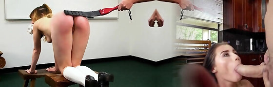 Perverr step-dad disciplines his stepdaughter for bad marks