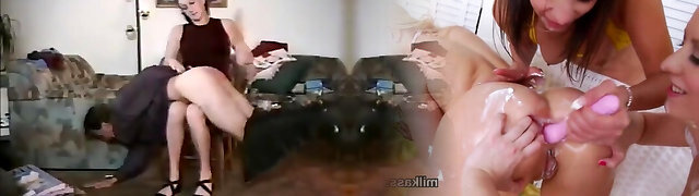 Domme spahnks and plugs her slaves