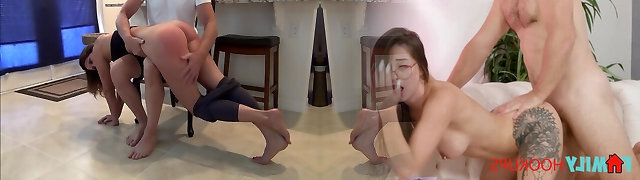 Claru Matthews shrieks during good fingering with Ellie Shou