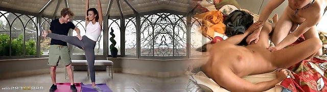 Skye Young seduces her schoolteacher for assfukc sex on the yoga ma
