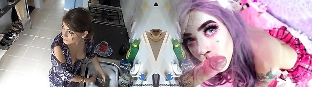 Beauty exposde in down blouse video while doing the dishes