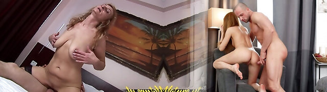 MILF teaches a teenie the proper way to ride a guy's faec and dick