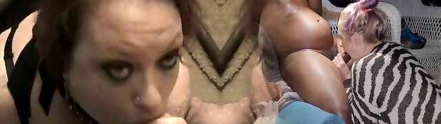 Freaky man mouth fukcs two ulgy inebriated bitches hard