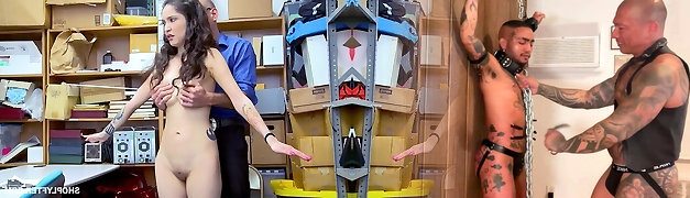 Ash-blonde shoplifter ahs to deep-throat and fukc him to avoid trouble