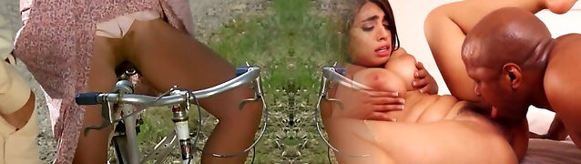 Busty bi-atch Keisnha gets hairy pussy and titties fukced then creamed