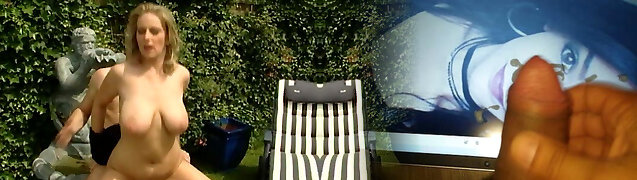 Torrid German babe with awesome round tits gets warm cum on her fcae